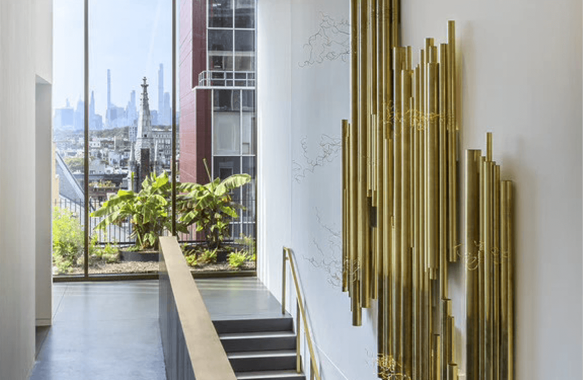 İç mekânda beton yüzeyler, geniş merdiven yapıları, ahşap detaylar ve pirinç kullanımı öne çıkıyor. Çatı terasında ise yerel bitkilerle düzenlenmiş bir peyzaj alanı ve Manhattan manzarasına açılan geniş bir görüş alanı bulunuyor. Böylece yapı, yalnızca bir sergi alanı değil, aynı zamanda kamusal kullanıma açık bir buluşma noktası olarak işlev görüyor.