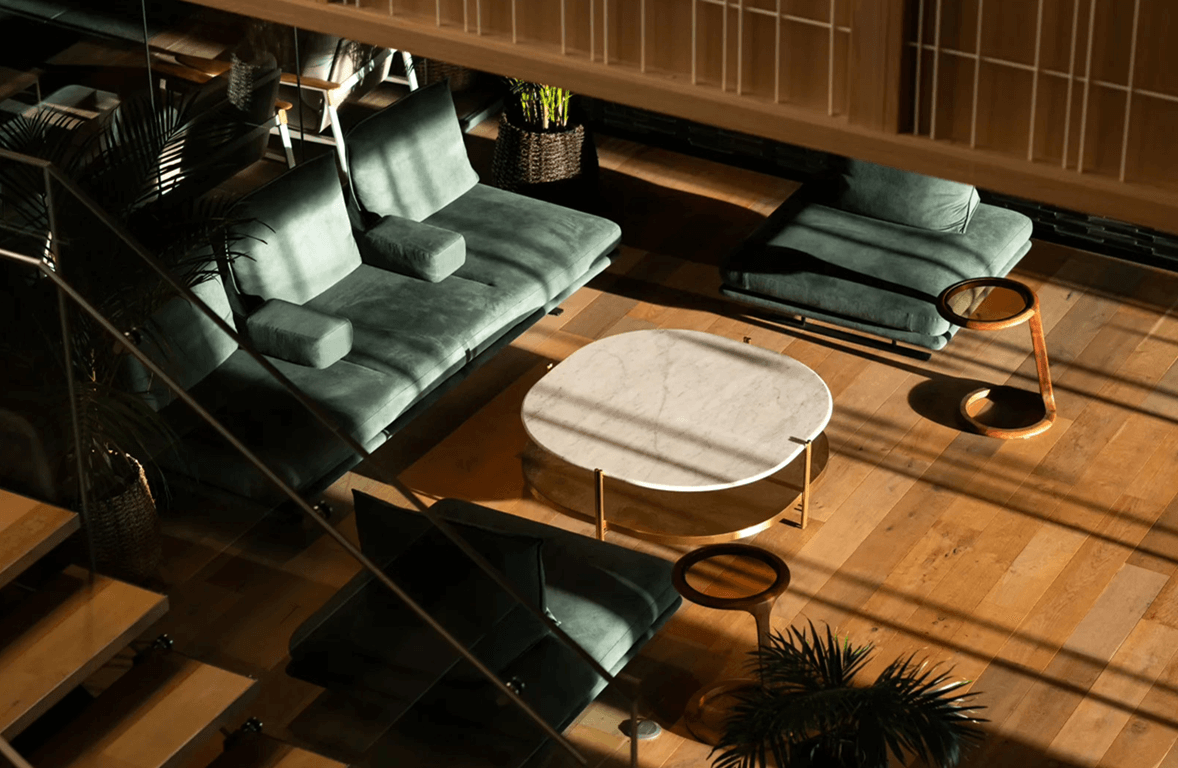 İç mekânda sıcak dokulu malzemeler tercih edilirken, ergonomik yerleşim planı ve detaylı işçilik yüksek performans anlayışıyla uyumlu bir yapı sunuyor. Ahşap çıta tavan sistemi ise mekâna doğayla iç içe bir karakter kazandırıyor.