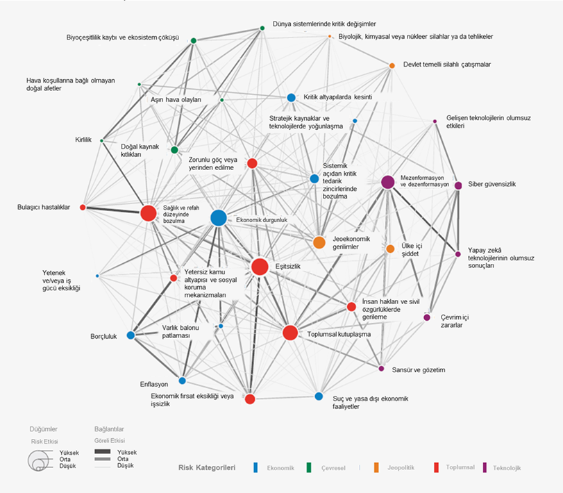 Raporun ortaya koyduğu riskler arasındaki yoğun bağlantılar, bir alanda yaşanan şokun hızla başka alanlara yayılarak çok boyutlu krizlere dönüşmesine neden olabileceğini göstermektedir.